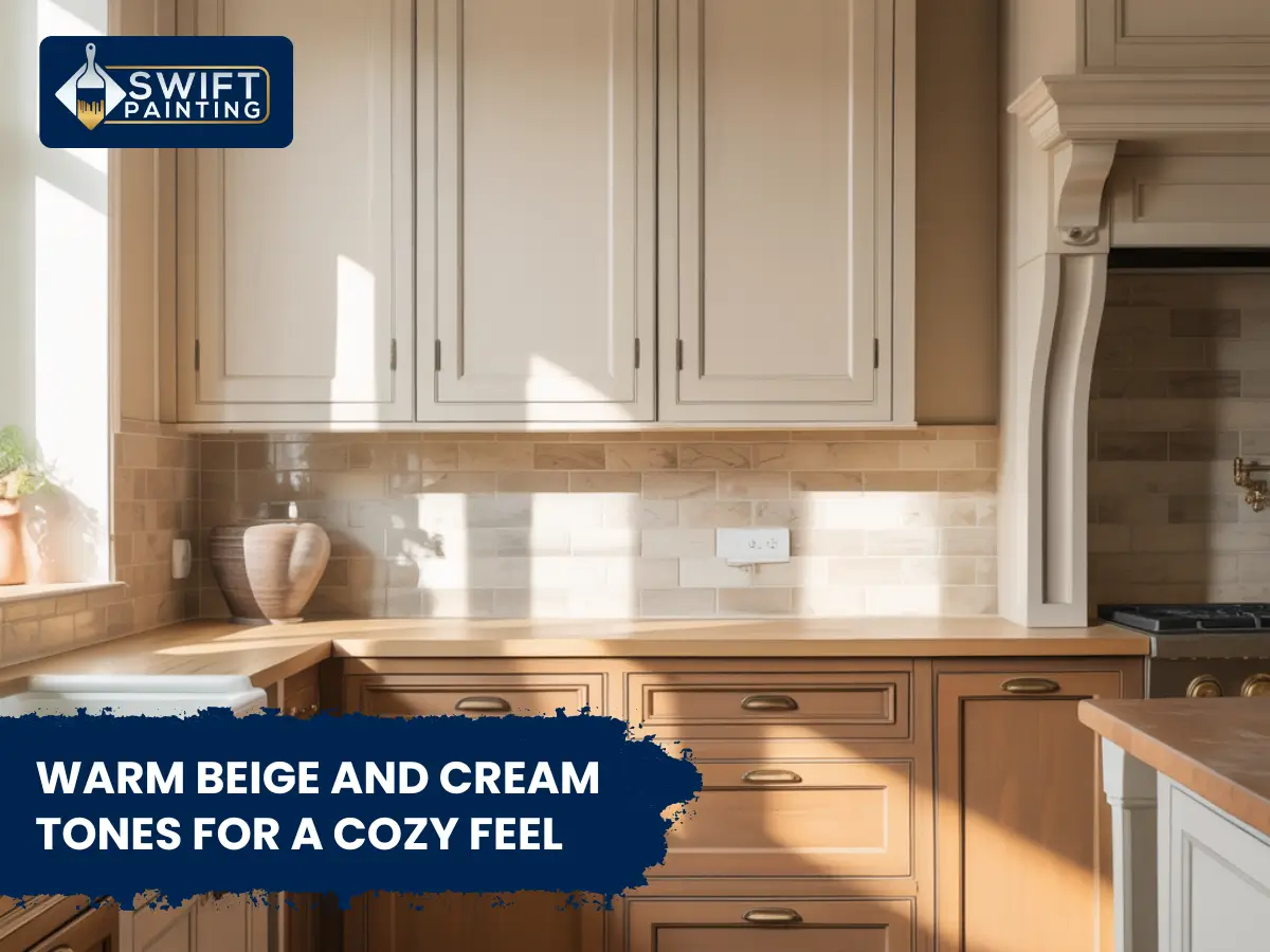 Beige, cream, and warm neutral tones create an inviting and relaxing kitchen atmosphere. These colors bring warmth and comfort, perfect for homes that favor a rustic, farmhouse, or cottage-inspired style.