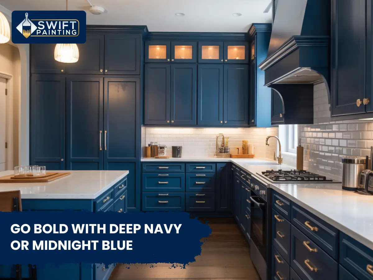 Dark blue shades such as navy or midnight are designer favorites because they create instant drama while staying classy. These tones add depth and luxury, especially when paired with gold or brass hardware.